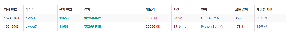 파이썬 공부를 해보면서 c++과 얼마나 차이가 심한지 실험해보고자 두번 문제를 풀었다.